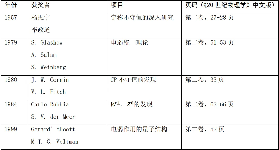 表2 宇称不守恒的发现导致的诺贝尔物理学奖成就一览