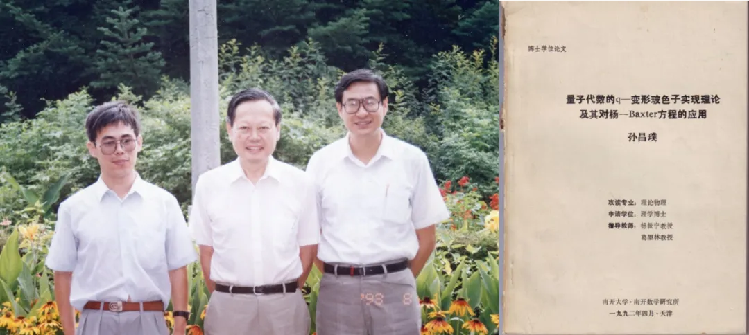 图1 左:孙昌璞(左一)与杨振宁先生和葛墨林先生(右一)的合影;右:孙昌璞博士学位论文封面