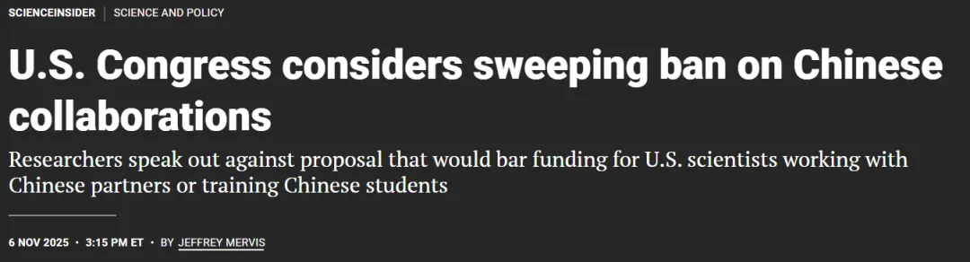 根据《科学》杂志报道:这项名为“SAFE”的法案,计划以“国家安全”之名,全面禁止与中国有合作关系的科学家获得联邦资助,禁令甚至可追溯至5年前。该消息目前已引发近800名美国学者联名抗议,顶尖大学集体发声,直指该法案是“一刀切”的过度反应,将窒息科学的生命力,并加速中美关系的极化。
