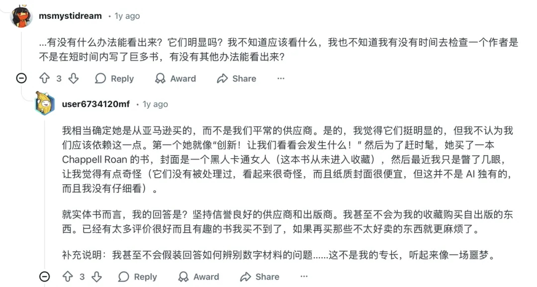 首当其冲的是图书管理员。他们在 Reddit 和 404 Media 上爆料,他们在后台看到大量 AI 写的书,封面诡异、内容空洞。而他们却对此无能为力。