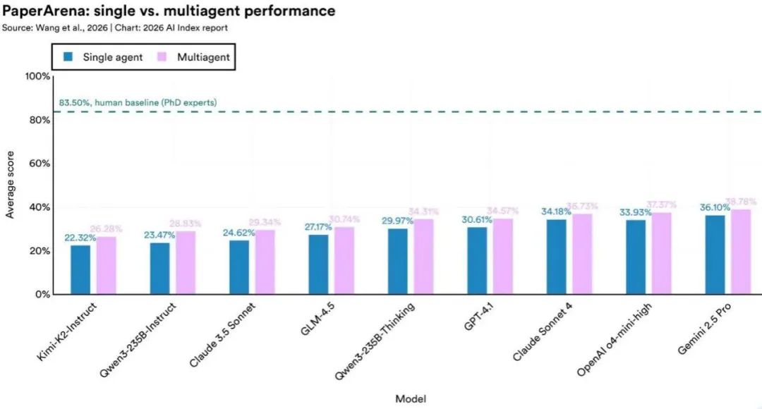 [1] Sha Sajadieh, Loredana Fattorini, Raymond Perrault, Yolanda Gil, Vanessa Parli, Lapo Santarlasci, Juan Pava, Nestor Maslej, Russ Altman, Erik Brynjolfsson, Carla Brodley, Jack Clark, Virginia Dignum, Vipin Kumar, James Landay, Terah Lyons, James Manyika, Juan Carlos Niebles, Yoav Shoham, Elham Tabassi, Russell Wald, Toby Walsh, Dan Weld. “The AI Index 2026 Annual Report,” AI Index Steering Committee, Institute for Human-Centered AI, Stanford University, Stanford, CA, April 2026.